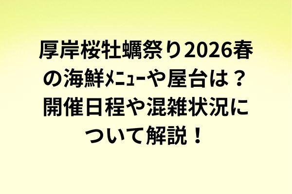 そこで今回は、厚岸桜牡蠣祭り(あっけしさくらかきまつり)2026春の最新情報と例年傾向を分けながら、春の海鮮メニュー、屋台、混雑、アクセスまでわかりやすくまとめました。