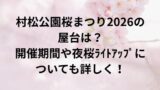 | 屋台出店期間 | 2026年4月15日(水)〜5月5日(火・祝) |