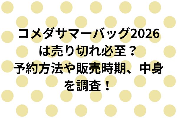 この記事では、2026年のコメダサマーバッグを予想しつつ、予約方法や確実に買うコツまで分かりやすくまとめました。