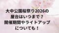 トップページ X Facebook はてブ LINE Pinterest コピー 2026.04.20 ‐新着記事‐ 小田原北條五代祭り2026いつから?開催日程や屋台、アクセス情報 2026.04.20 三条祭り2026の屋台は?出店時間やイベント見どころについて詳しく! 2026.04.20 大和市民まつり2026の屋台出店は?アクセスや駐車場についても詳しく! 2026.04.20 大館さくらまつり2026屋台は?夜桜ライトアップイベントについても! 2026.04.19 有田陶器市2026の駐車場はどこ?アクセス方法と混雑回避のコツを徹底解説! 2026.04.18 ‐人気記事‐ 毛馬桜之宮公園桜の見ごろとライトアップについて!屋台出店や開催期間をまるっと解説! 2026.03.192026.03.31 大中公園桜祭り2026の屋台はいつまで?開催期間やライトアップについても! 2026.03.242026.04.01 各務原市桜まつり2026の屋台情報!ライトアップや駐車場について詳しく! 2026.03.212026.03.31 岡崎桜祭り2026駐車場は無料もある?開催期間、屋台や夜桜ライトアップについても! 2026.03.192026.03.31 開成山桜祭り2026の屋台は?開催基本情報や駐車場について詳しく! 2026.03.222026.04.01 ‐更新記事‐ 小田原北條五代祭り2026いつから?開催日程や屋台、アクセス情報 2026.04.20 三条祭り2026の屋台は?出店時間やイベント見どころについて詳しく! 2026.04.20 大和市民まつり2026の屋台出店は?アクセスや駐車場についても詳しく! 2026.04.20 大館さくらまつり2026屋台は?夜桜ライトアップイベントについても! 2026.04.19 有田陶器市2026の駐車場はどこ?アクセス方法と混雑回避のコツを徹底解説! 2026.04.18 カテゴリー一覧ページへ