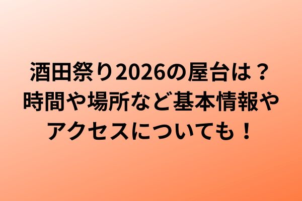 まとめ:酒田祭り2026の屋台は?時間や場所など基本情報やアクセスについても!