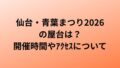 また、東北の祭り紹介ページでは、お祭り期間中に約300店近い店舗の出店が並ぶと紹介されています。
