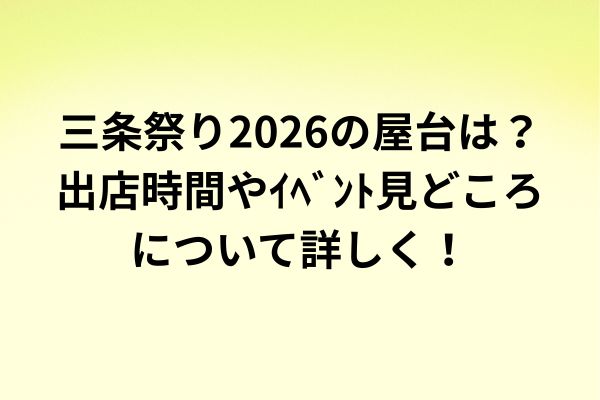 事前に屋台を回る時間と移動手段を決めて、三条祭り2026を気持ちよく楽しめるといいですね。