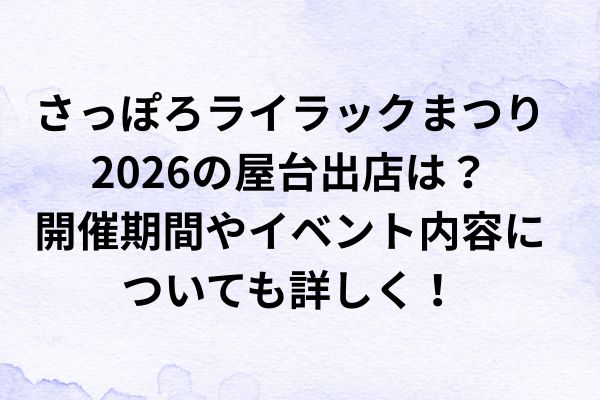 まとめ:さっぽろライラックまつり2026の屋台出店は?開催期間やイベント内容についても詳しく!