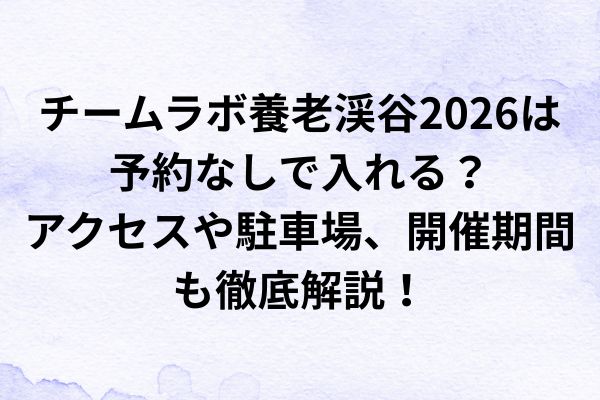 そこで今回は、チームラボ養老渓谷2026の4月28日時点で確認できる公式情報をもとに、開催期間、予約の対象者、アクセス、駐車場、迷う対策まで、初めて行く人にもわかりやすく整理しました。
